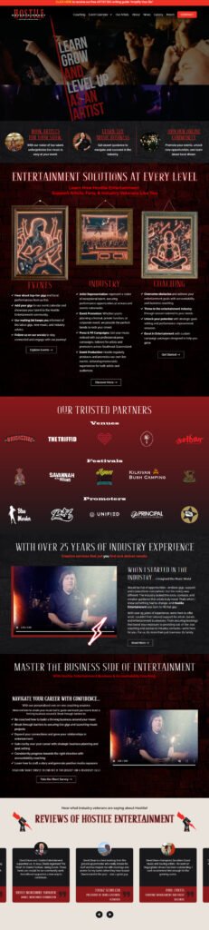 For Hostile Entertainment, I built a modern and engaging website using WordPress with Elementor, focusing on both visual